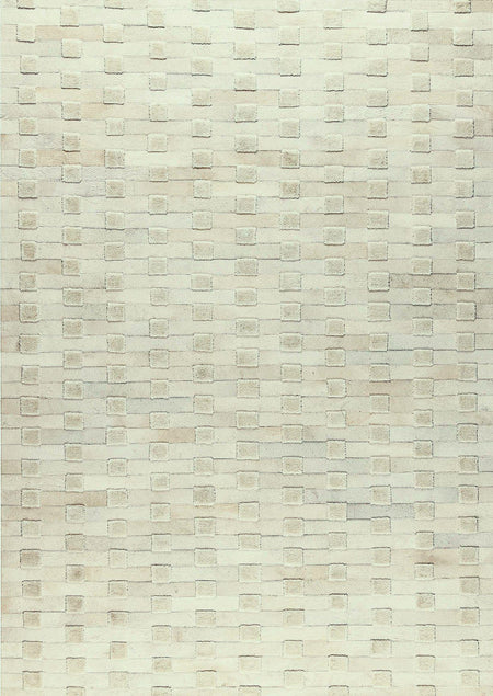 - Luxury Geometric Contemporary Handmade Leather Gau Algedi White Area Rug Carpet